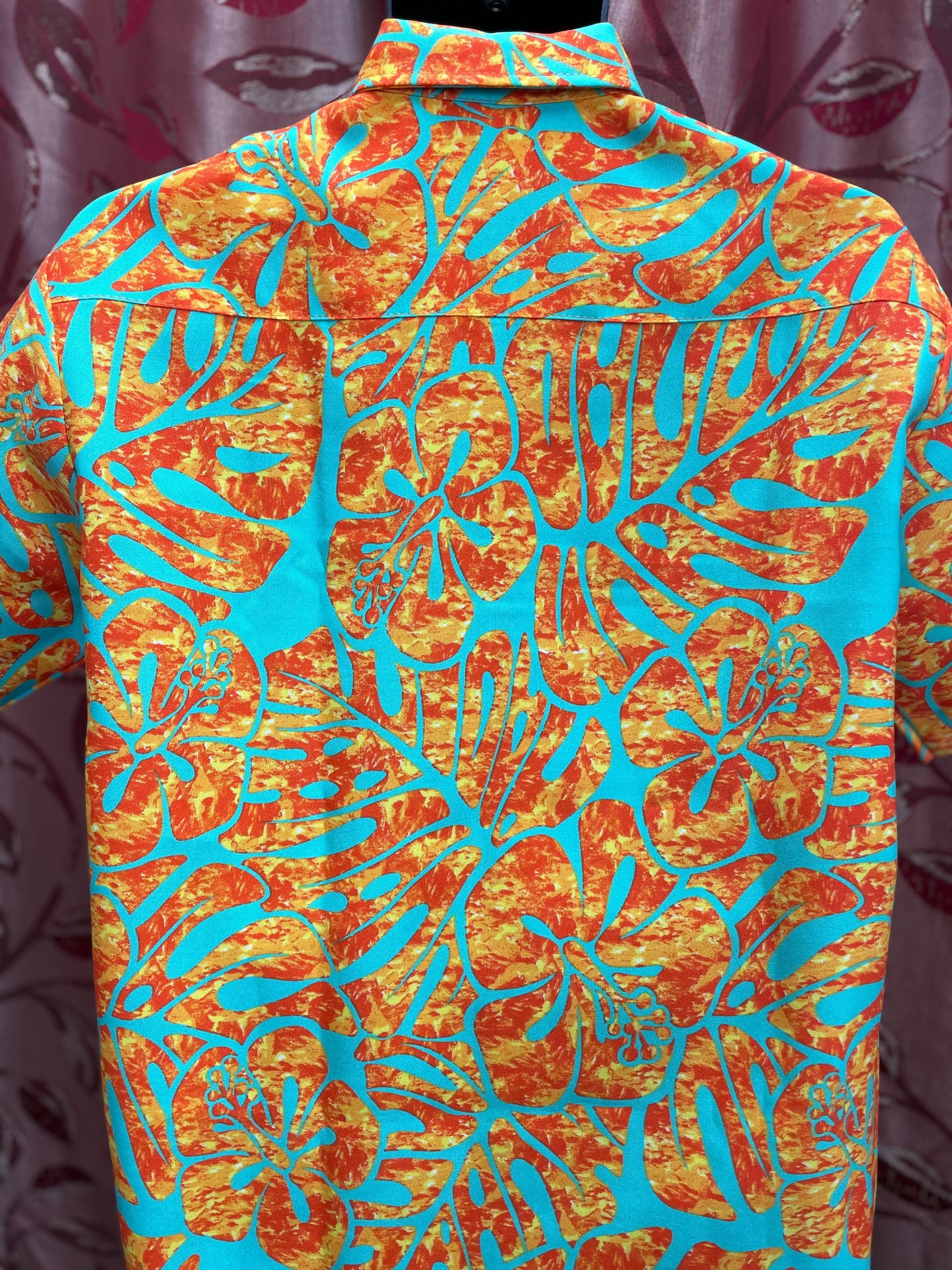 Men’s Short Sleeve Island Shirt – Orange & Aqua Floral Print